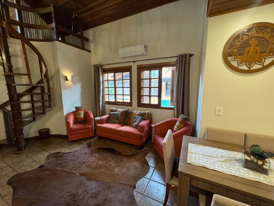 Apartamento duplex localizado no charmoso bairro Planalto, em Gramado, de frente para o Lago Joaquina Rita Bier e a poucos passos do Mini Mundo.