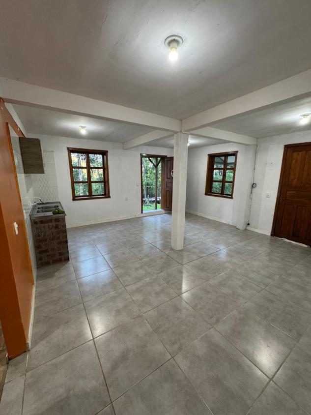 Isenta de taxa de água e IPTU, a residência disponível para locação corresponde ao pavimento inferior, com terreno privativo. O espaço conta com sala e cozinha integradas, 1 suíte confortável e um cômodo extra nos fundos, que pode ser utilizado como segundo dormitório ou conforme a necessidade do morador.